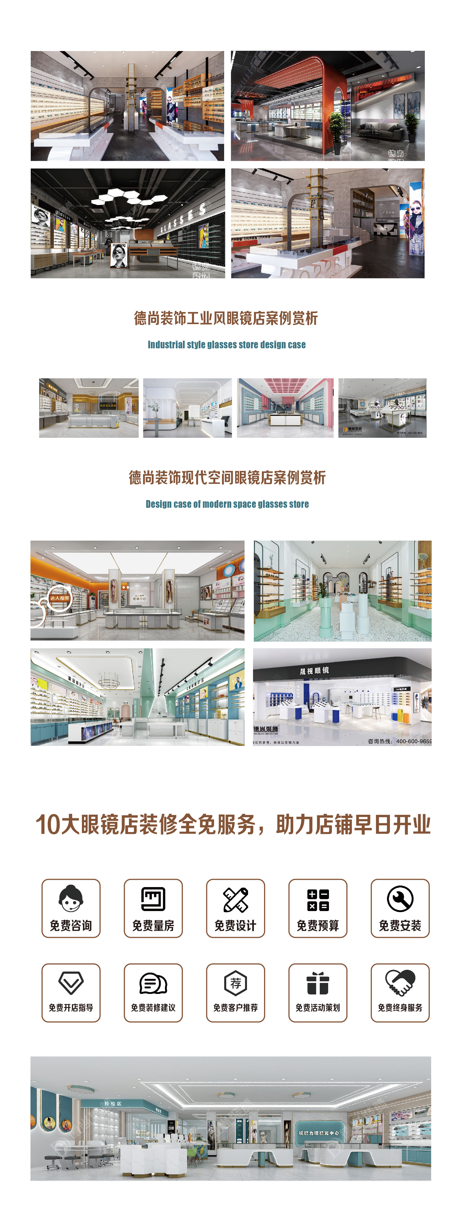 装修模式眼镜店整体装修设计(基础装修 展柜定制)