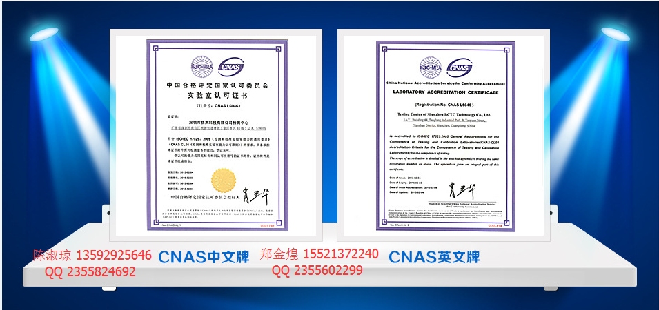 倍测已获得中国合格评定国家认可委员会CNAS资格认可(实验室证书号L6046),中国计量认证CMA资格认可和授权,美国实验室认可协会A2LA资质认可(实验室证书号4474.01),并依据ISO17025、ISO17020进行管理。同时也是UL美华、FCC、TUV南德与莱茵、欧陆Eurofins、Intertek天祥、CSA等国际权威机构授权合作实验室,检测报告具有国际公信力,赢得了国内外众多知名企业的信赖。