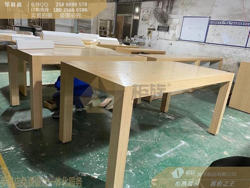 收银台,苹果木纹收银台,每一个品牌都有品牌特定的收银服务台,一般收银台的高度设计在900-1100之间,因为这个高度是非常适合成人顾客高度的设计,而手机体验桌,开放式手机体验台设计高度是900为标准,以上尺寸单位均为mm,不管是收银台还是体验桌都是按商家店内定制的标准而定做的,常规尺寸一般为1.5/1.8/2米,或者2.4米等的尺寸,而开放式体验桌尺寸常规为1.8/2/3米为标准制作,