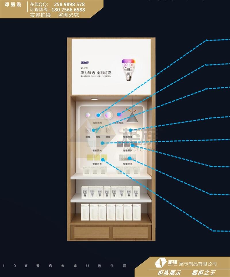 安全性原则商业展柜中的商品陈列设计,要保证陈列的稳定性,保证商品不易掉落。贵重物品在满足顾客观看、选择的同时,应适当地使用承装器皿、备品、隔离玻璃等。比如智能照明和智能门锁这几款华为层板配件柜,灯具和门锁安装一定不定时检查在展示给顾客体验时是否有松动,螺丝掉落的现象,以免产品掉落误伤到顾客,导致影响门店形象的事情一定要避免。