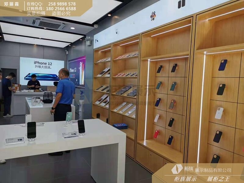 苹果13手机体验店新款配件柜,靠墙款式,台面可展示手机或平板等产品,尺寸可根据现场定制,免费设计店铺平面图效果图,专业给与您开店指导建议苹果卡墙式灯箱,画面可更换,一般卡入墙体的配件柜和灯箱高度是1.8米,而长度是根据实体店内尺寸定制,现场装修只要预留要尺寸,厂家便可根据尺寸确定需要制作的长度,展示柜尺寸的定制是为了跟完善贴合店内需要来制作,达到事半功倍的效果