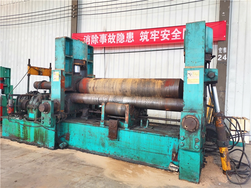安徽液压圈圆机 40x2500三辊卷板机 plc全自动卷板机整体部件完好、厂家已调试运转正常接电可用。