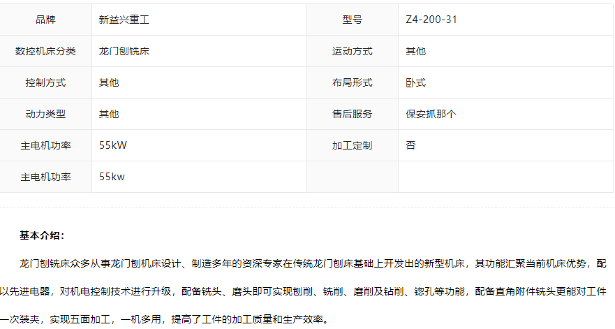 龙门刨铣床众多从事龙门刨机床设计、制造多年的资深在传统 龙门刨床基础上开发出的新型机床,其功能汇聚当前机床优势,配以电器,对机电控制技术进行升级,配备铣头、磨头即可实现刨削、铣削、磨削及钻削、锪孔等功能,配备直角附件铣头能对工件一次装夹,实现五面加工,一机多用,提高了工件的加工质量和生产效率