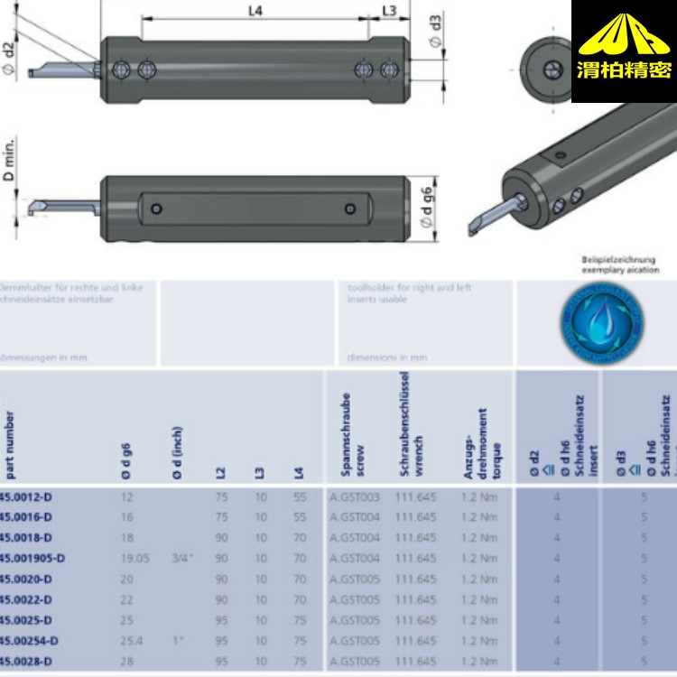 直径从 Ø 12/12.7 mm 起,用于切削刀片 Dmin Ø 0.2-7.8 mm