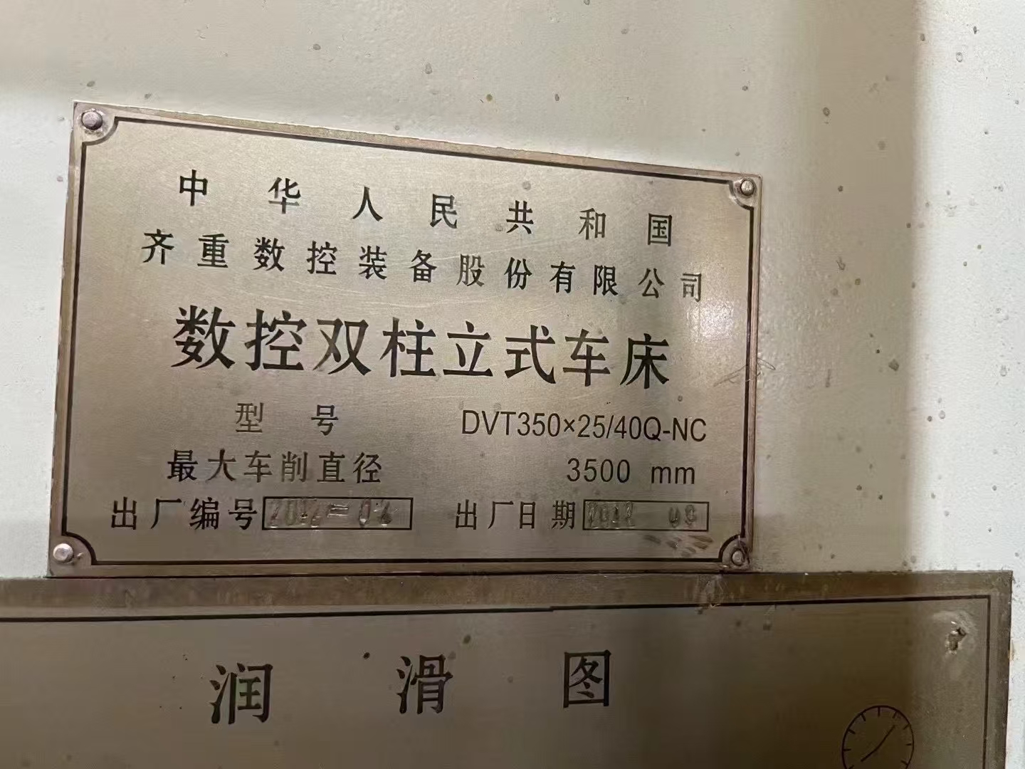 售:齐齐哈尔3.5米数控立车型号DVT350?25/40Q-CN,加工高度2.5米,承重40吨,工作台直径3.15米,主电机功率75KW,机床重量:70吨,滑枕截面;220*220mm西门子系统,在位闲置