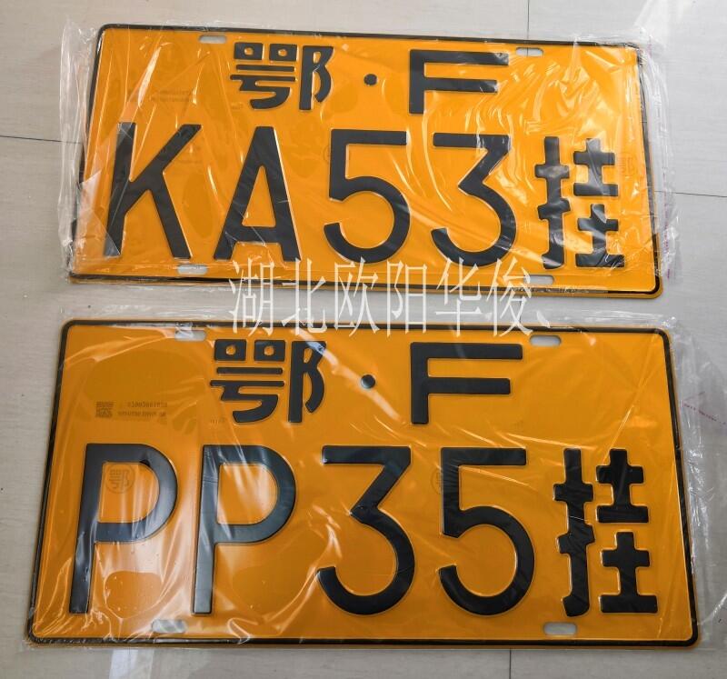 两台低平板半挂车的车牌号分别为:鄂FKA53挂、鄂FPP35挂。
