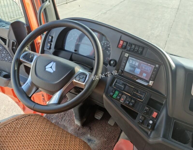 好消息:因客户货源发生变动,现忍痛割爱低价出售——汕德卡540马力牵引车头配12米重型侧翻半挂,此车使用不到一年,车况优,整车无事故,手续齐全,可提档过户。