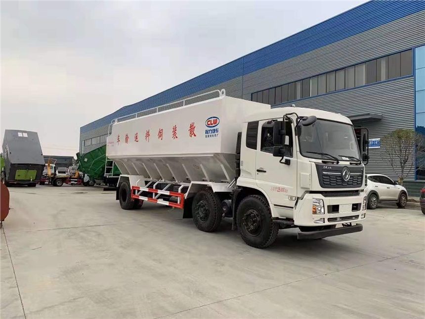 东风天锦前四后四30立方电动散装饲料车,康明斯245马力发动机,法士特8档变速箱,1100钢丝胎,气囊座椅,中控门锁,电动门窗,调试完毕!!服务热线: