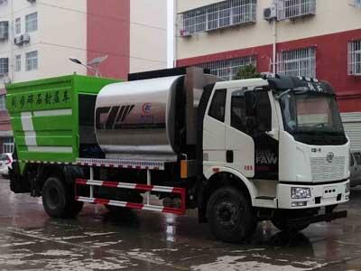 京牌国六解放J6L同步碎石封层车此车为路面同步碎石封层专用车辆,专用装置为洒布机。此整车长/轴距对应关系为(mm):9000/5300,8700/5000,8400/4700,8200/4500。当轴距为5300mm,5000mm时,整备质量为11800kg,当轴距为4700mm,4500mm时,整备质量为11000kg。防护材料:Q235,连接方式:左右侧面防护与副梁采用焊接连接;后部为专用装置:洒布机构,离地高为(mm):380。ABS系统生产厂家:长春瑞立科密汽车电子有限公司,型号:CM4XL。