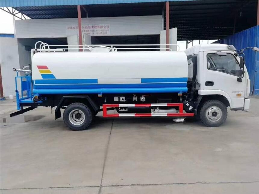 9.2方跃进洒水车,云内130马力,5挡带副变速,7吨后桥,断气刹汽刹,动力转向,7.50-16轮胎,无备胎。 4MM厚武钢碳钢板。大口径球阀, 配40立方米/每小时 大功率专用洒水泵。带前冲后洒 后置工作平台绿化炮射程25米