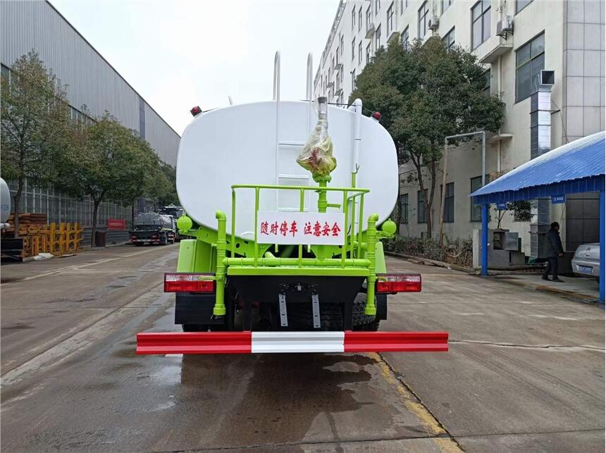 上装常规配置:罐体采用国标4mm厚优质碳钢板制作,前冲、后洒、侧喷、高位花洒、轴承高炮及小平台,60-90洒水泵,罐体内部防腐,罐体后方底部加装100出水口,加装工具箱一个,其他标配。