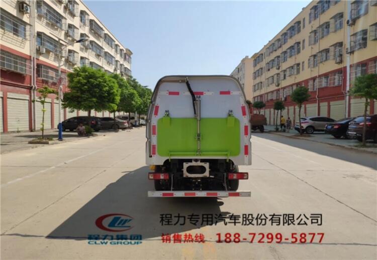 上装标配:带4个扫盘、江铃78马力副发动机、三洋马达、施耐德控制开关、海普瑞斯电磁阀组、无级变速自动离合器、免维护离心式自动风机、不锈钢垃圾箱、上海新西山电子水泵,尾部LED箭头指示灯、手动泵应急系统、垃圾举升自卸功能。