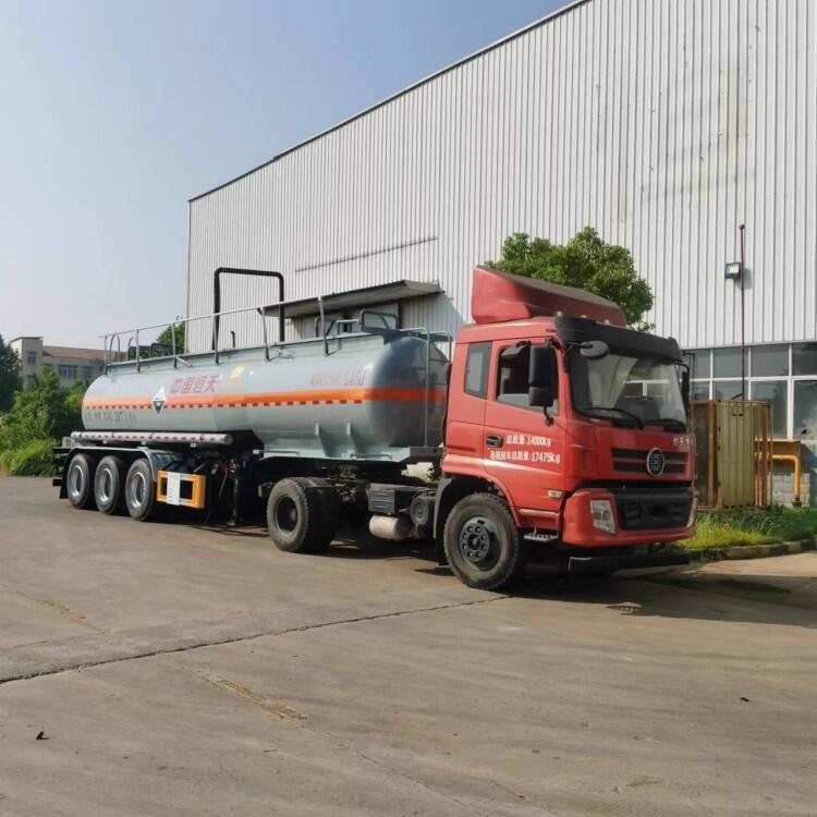 该车为危险品运输车辆,危险货物运输车辆的车辆类型为AT型车辆.罐体总容量为29.6立方米;罐