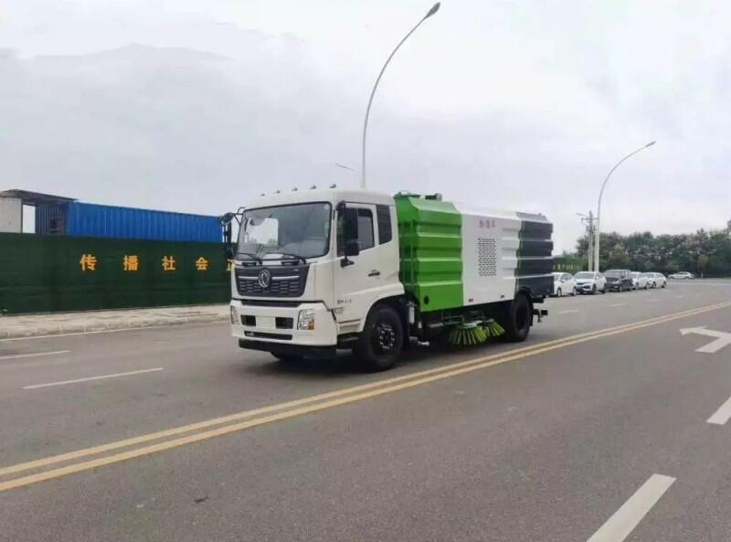 4、东风天锦12方扫路车采用吸扫结合的方式收集垃圾,湿式除尘、电液控制,液压倾翻卸料的作业方式对路面进行清扫作业。
