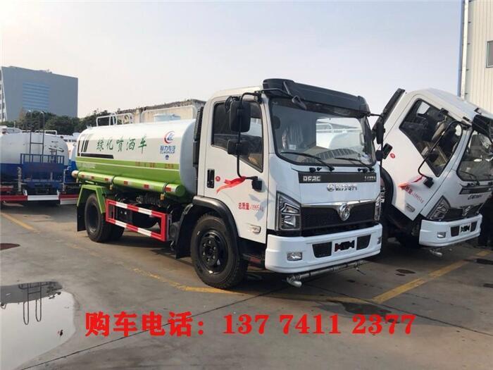 洒水车前冲(喷)后洒,带侧喷,罐体后带工作平台,平台上安装绿化洒水炮,洒水炮可旋转,可连续调成直冲状、大雨、小雨、毛毛雨,带安全护栏,配备全国质量评比名的杭州威龙大功率专用洒水泵,泵可自吸自排,安装过滤网,带消防接口,可通过消防栓进水,带自流阀,随车选装20米绿化卷盘,可喷洒农药,罐体金属漆。