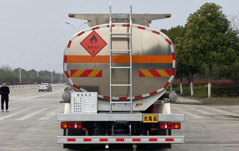 带有活动护栏及防滑网,保障恶劣天气下车顶作业人身安全。标配卸料箱1个,工具箱1个,8Kg灭火器2个,整车贴有易燃液体标识,安全告