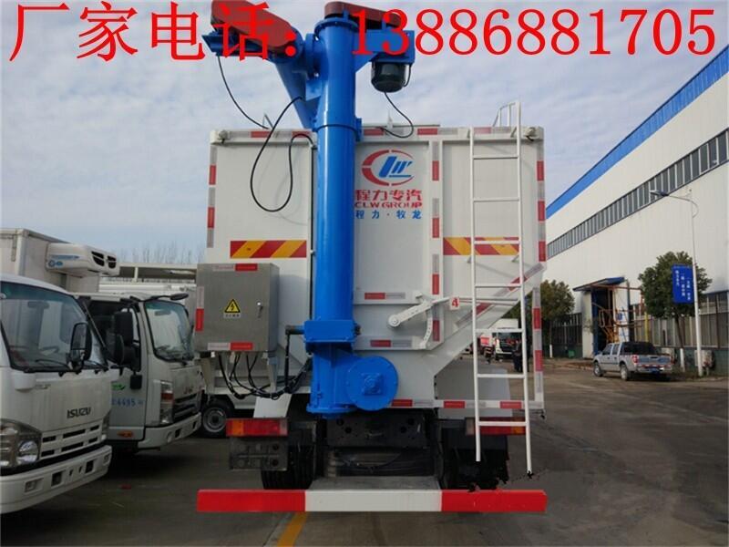 12吨散装饲料车采购价上装标配带个扫盘江铃副发动机三洋马达施耐德控制开关海普瑞斯电磁阀组无级变速自动离合器免维护离心式自动风机不锈钢垃圾箱尾部LED箭头指示灯手动泵应急系统中联北极星电子水泵,垃圾举升自卸功能。