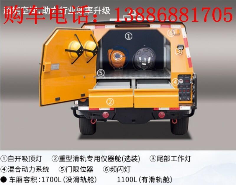 选装行李架、爬梯、车顶工作台;选装不同形状、结构的警示灯;选装中隔断(可选择开门)、车身两侧可选开上掀门、盲窗、侧开门;花纹铝板;加装设备工具柜、配电箱、发电机组、水泵、电焊机、空压机等线路安装外接电源系统、(室内灯光照明、探照灯、高杆照明灯等);绕线盘,还可根据用户不同需求加装不同的维修抢险设备、车身制作专用图案或标识。备注:其他车型以及配套垃圾箱详细参数、配置请电议!