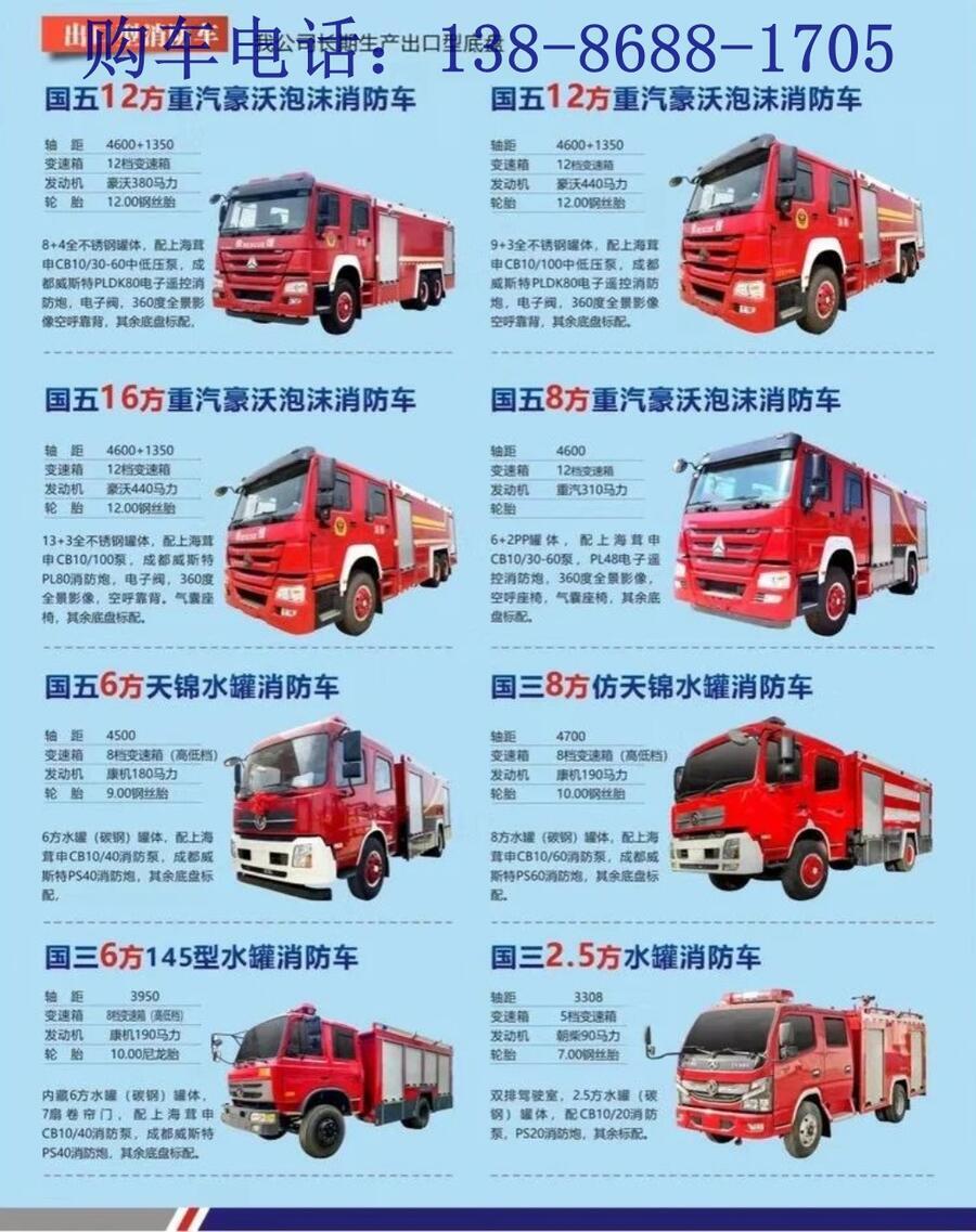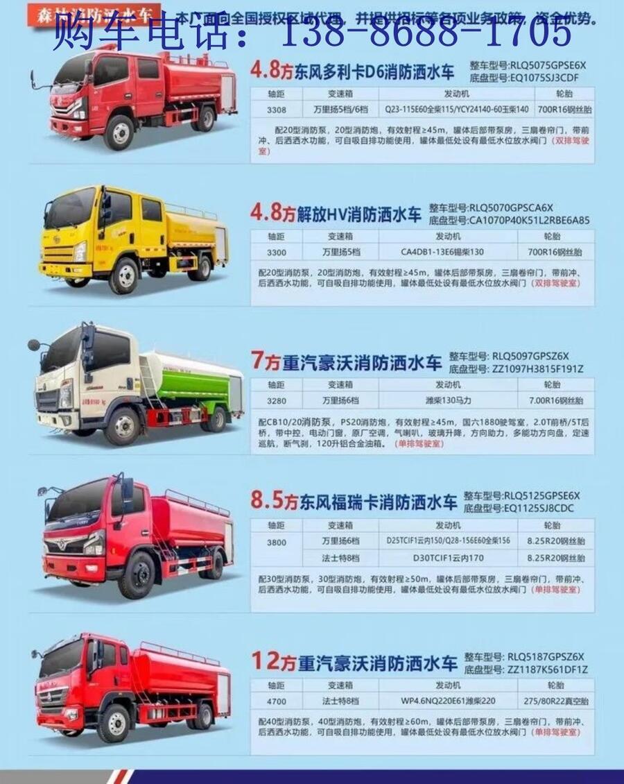 我公司生产的制造的消防车现有2方、3方、5方、6方、8方、10方、12方、15方、18方、20方、25方、30方的消防车可满足不同客户需求。东风小多利卡5吨消防车常备现货10台,欢迎您来选购!