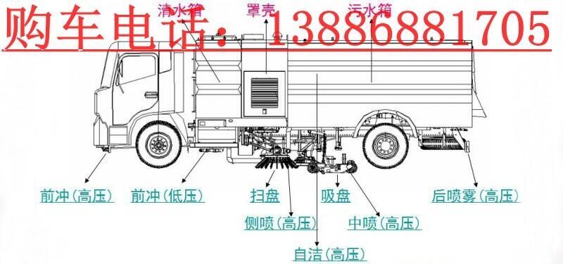 洗扫车具有路面清洗、路面清扫 路缘和路缘石立面洗刷、低压冲洗、喷雾除尘等多功能。有“全洗扫”、 “左洗扫”、