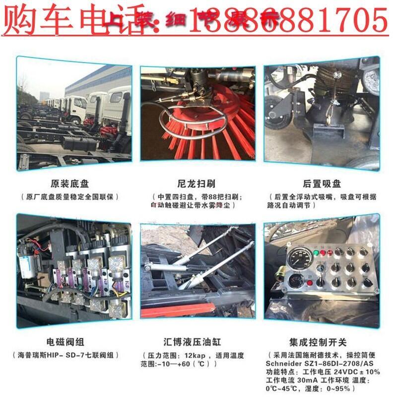 上装标配:带4个扫盘、江铃副发动机、三洋马达、施耐德控制开关、海普瑞斯电磁阀组、无级变速自动离合器、免维护离心式自动风机、不锈钢垃圾箱、尾部LED箭头指示灯、手动泵应急系统、中联北极星电子水泵,垃圾举升自卸功能。