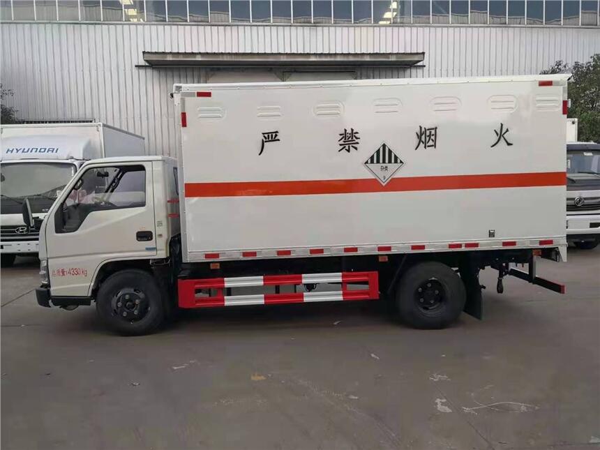 江铃杂项危险物品厢式运输车,蓝牌,厢长4.1米,115马力、五档变速箱、7.00钢丝胎、方向助力、油刹、排气管前置、前盘碟刹、限速
