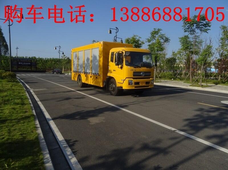 设备采用东风底盘改装,总质量12.5吨,发动机功率127kw,排放标准达到国五标准,3.8米轴距,带空调,方向助力,涉水深度600mm。