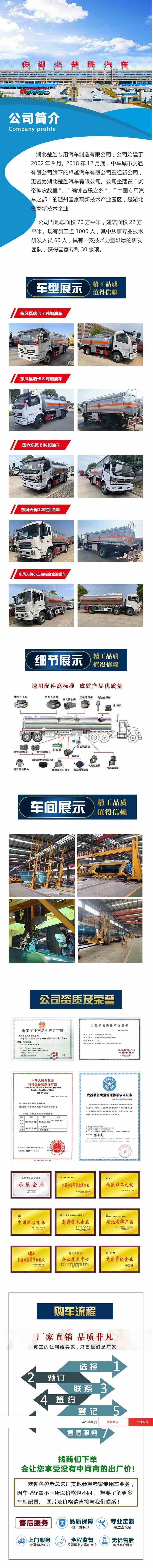 东风多利卡油罐车  油罐采用国标Q235钢材5mm,罐体内置波浪式防浪板,可增加行驶过程中车辆稳定,罐体强度,罐顶配有钢丝网安全走道,安全护栏,整车制作按照相关危险品要求制作(欧标全套包含欧标罐口,声光控制海底阀,油气回收,下装油口),危险品标识,3M危险品标识,易燃液体标识及爆字标识可选。