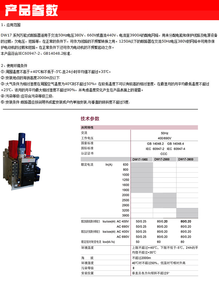 上海人民DW17-800A 固定垂直 (ME)万能式断路器
