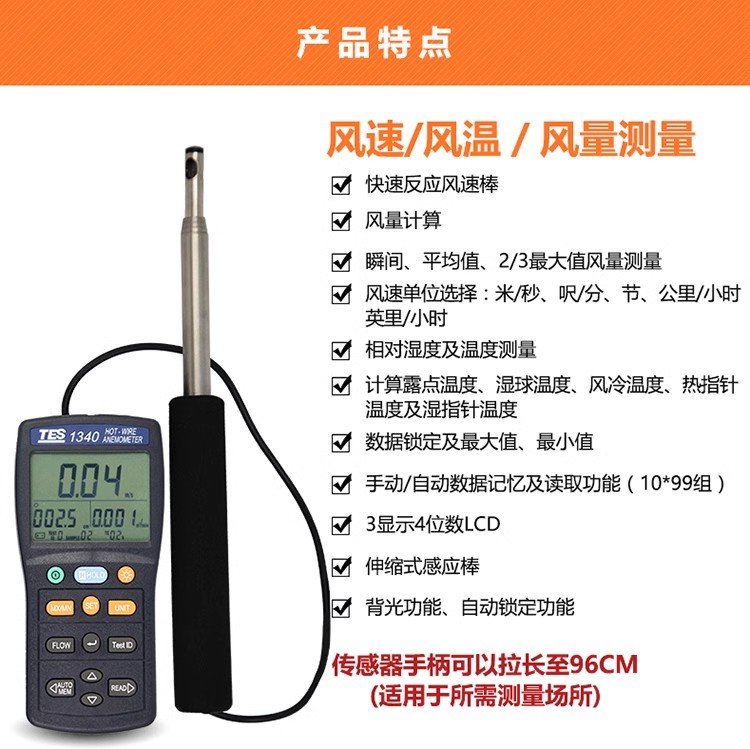 中炫供应 泰仕TES热敏风速仪TES-1340/TES-1341N 风速表测风仪厂家 品牌 | 台湾泰仕TES | ||