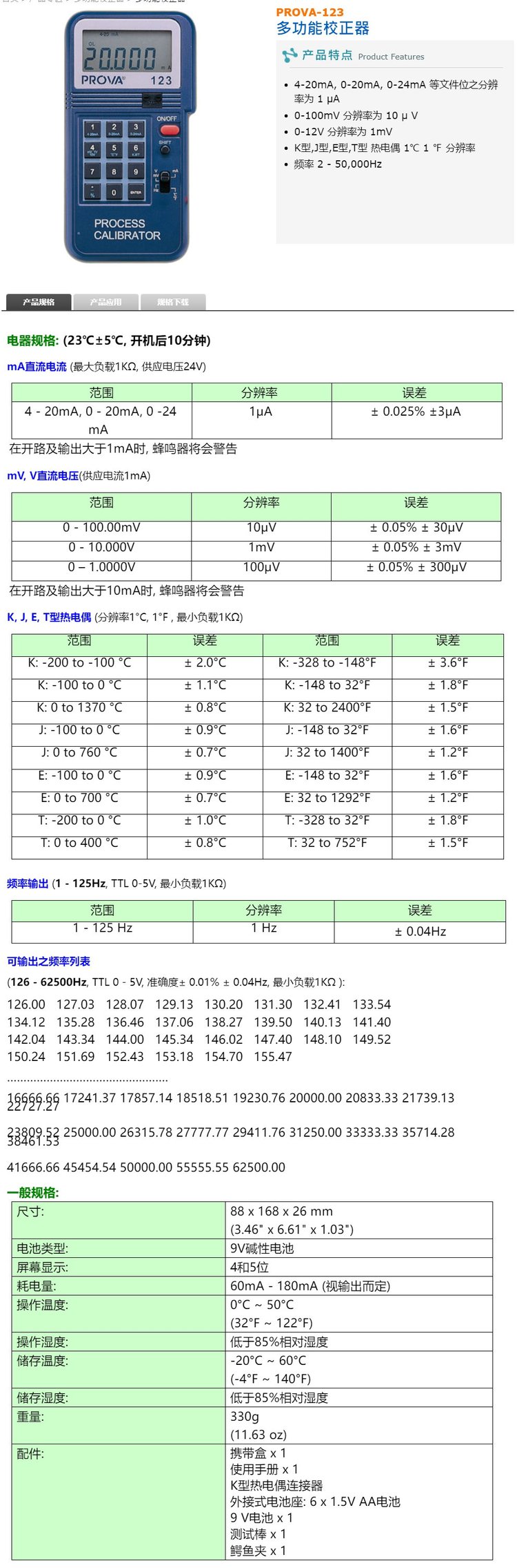 泰仕PROVA iCal/100/123记录型多功能校准仪4-20mA回路温度校正器 品牌 | 泰仕TES | ||