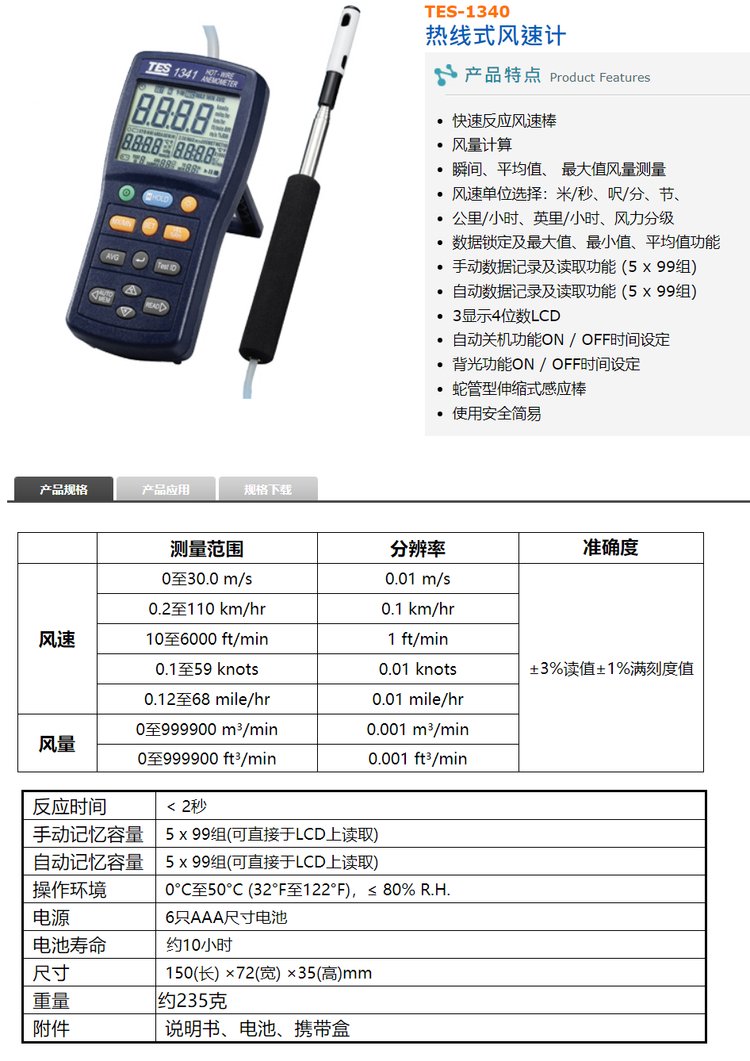 中炫供应 泰仕TES热敏风速仪TES-1340/TES-1341N 风速表测风仪厂家 品牌 | 台湾泰仕TES | ||