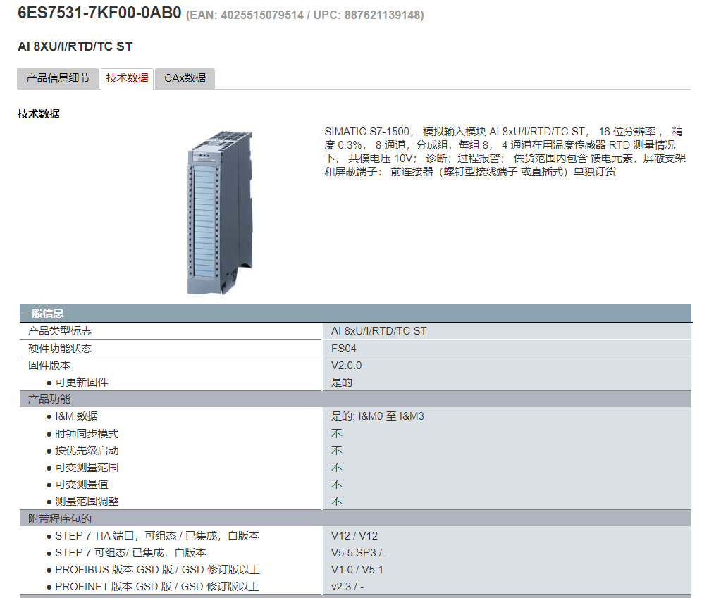型号 | 6ES7531-7KF00-0AB0 | ||