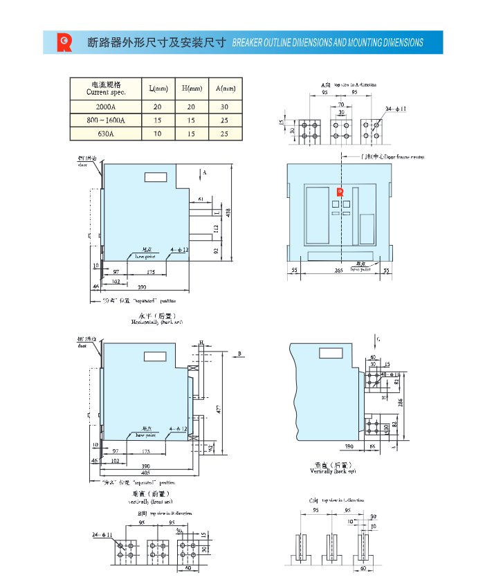 进线方式 | 后水平接线后垂直接线前接线 | ||