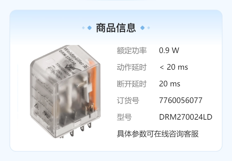 Weidmuller/魏德米勒 带LED和二极管继电器 7760056077 DRM270024LD 型号 | DRM270024LD | ||
