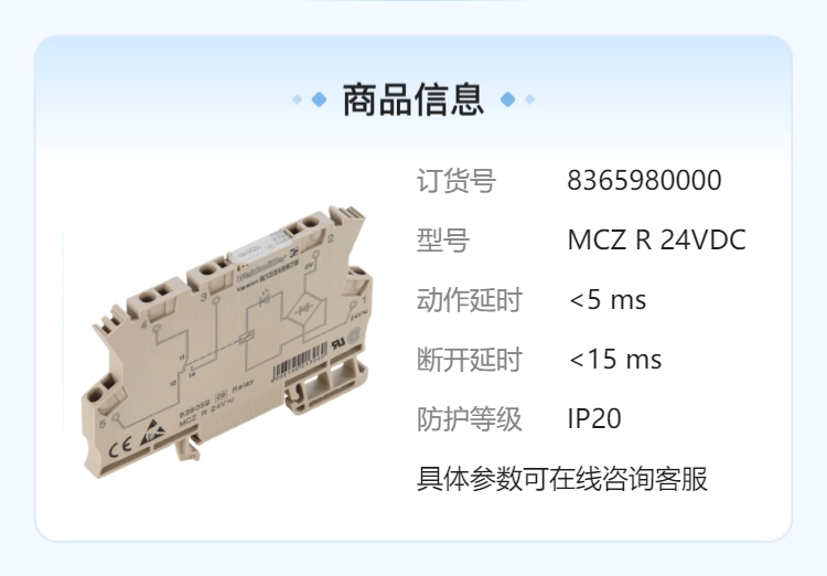 含税低价 现货 Weidmuller/魏德米勒 标准继电器 8365980000 MCZ R 24VDC 型号 | MCZ R 24VDC | ||