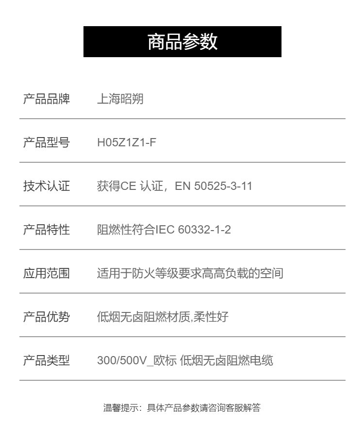 H05Z1Z1-F_300/500V_欧标 低烟无卤阻燃电缆_【CE认证】 品牌 | 昭朔电缆 | ||