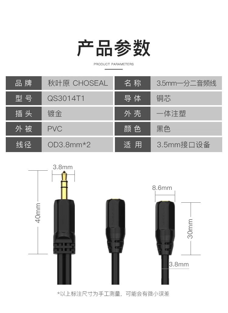 Choseal/秋叶原 耳机分线器3.5mm一分二公对母音频线 QS3014 品牌 | 秋叶原 | ||