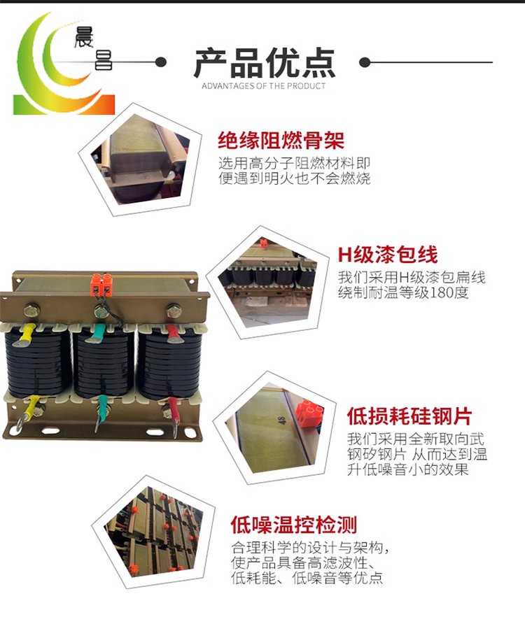50KVA电容器配套三相串联电抗CKSG-3/0.45-6铁芯补偿滤波电抗器 品牌 | 晨昌 | ||