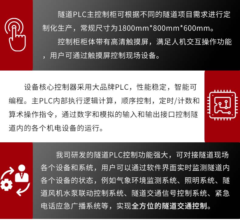系统功能 | 可远程控制隧道各机电设备的运行工作 | ||