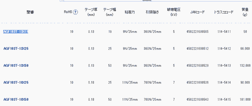 日本中兴化成工业CHUKOH胶带AGF103T-13X19