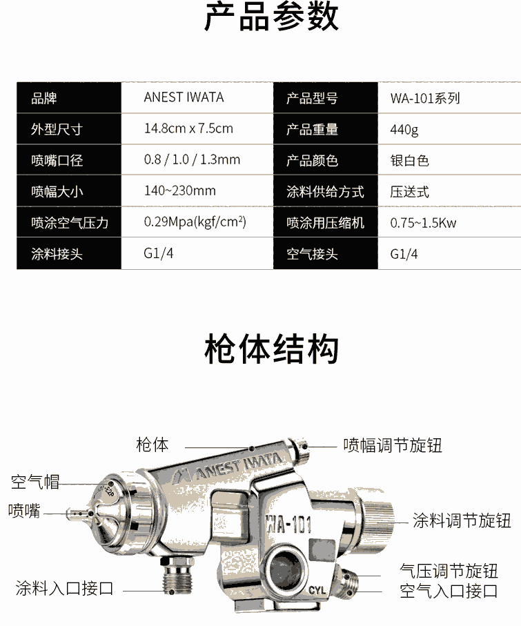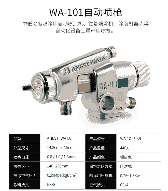 岩田喷涂IWATA通用自动喷枪WA-101-102P;WA-101-132P