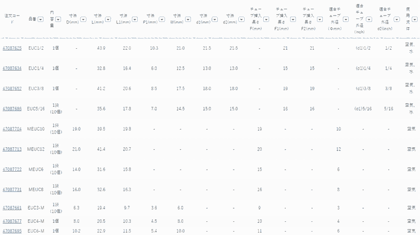 日本霓达NITTA工业用接头EUC1/2;EUC3/8