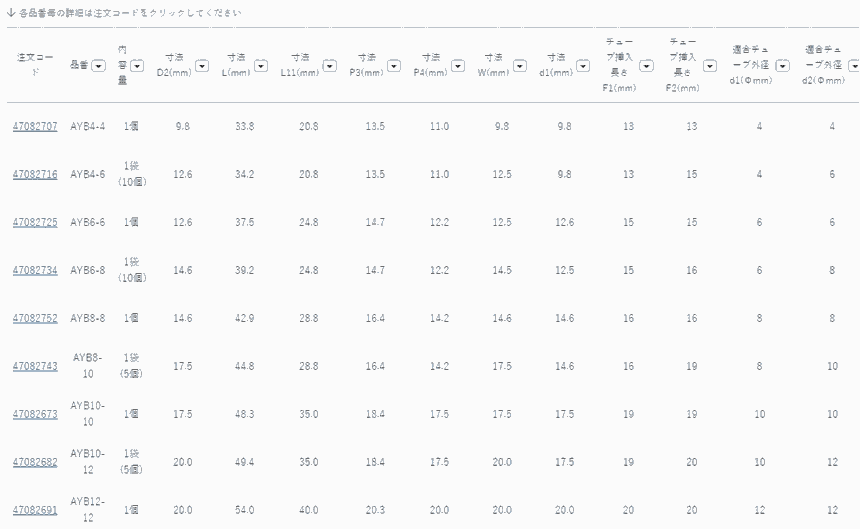 形状Yユニオン 使用流体空気 水 高使用圧力(MPa)1 使用温度範囲(℃)(空気)-20~+80、(水)0~+40