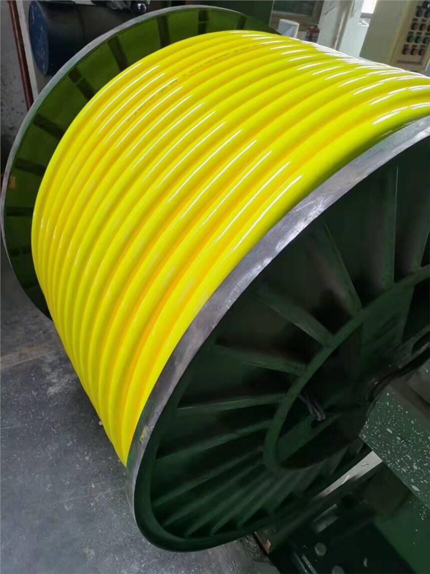 铁矿用铲运机电缆工作环境恶劣,需要在巷道中频繁移动供电,直接接触铁矿石,因此电缆的外护套耐磨要求非高。铲运机工作期间,前行、平移或回收,电缆将受到很大的拉力和扭转,因此电缆的抗拉、弯曲、抗压和扭转、耐磨性能要求极高。