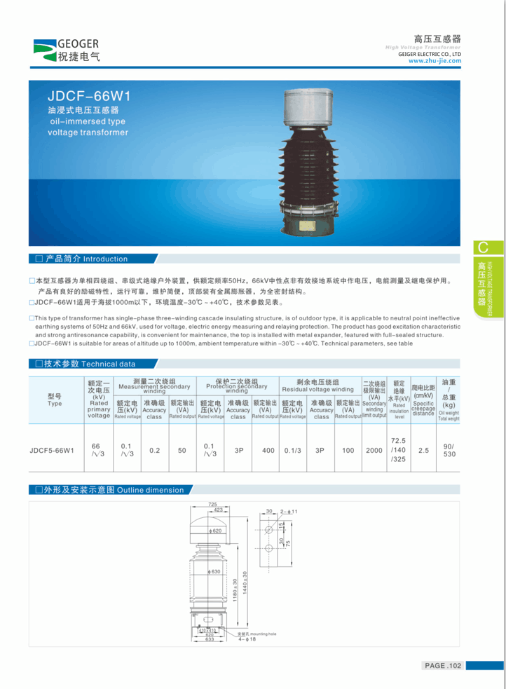 JDCF-60W2-66W2户外60KV电磁式电压互感器祝捷电气