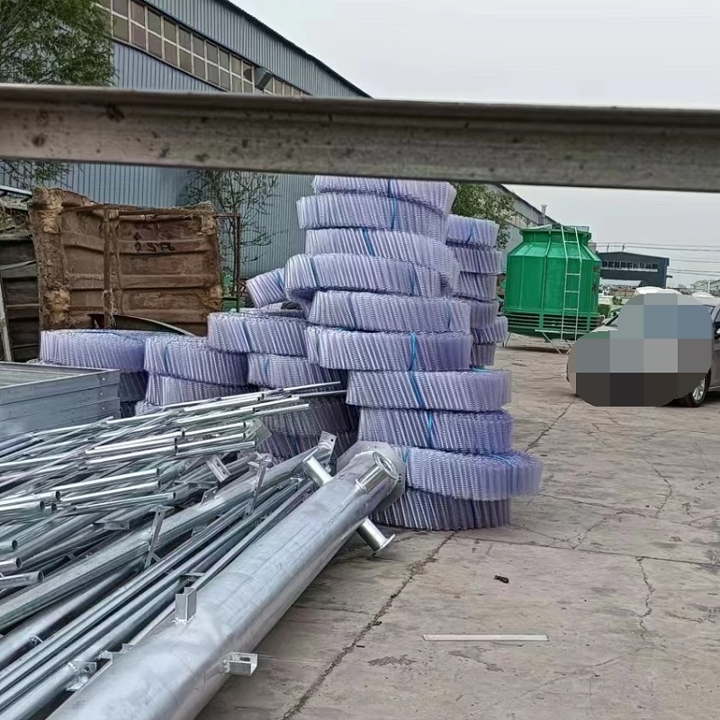 冷却塔玻璃钢DBHZ2百叶窗填料减速机风扇收水器风筒2、“悬臂多跨连续梁钢筋混凝土主框架逆流式冷却塔”,其特征是进风口的外侧立柱向里移1~2.5m,使气流直接进到淋水填料中,减少了进风口横梁处的涡流,并使塔的高度下降0.5~0.9m。配风均匀、冷效提高。在寒冷地区,不再会出现钢筋混凝土梁、柱的冻融损坏现象。
