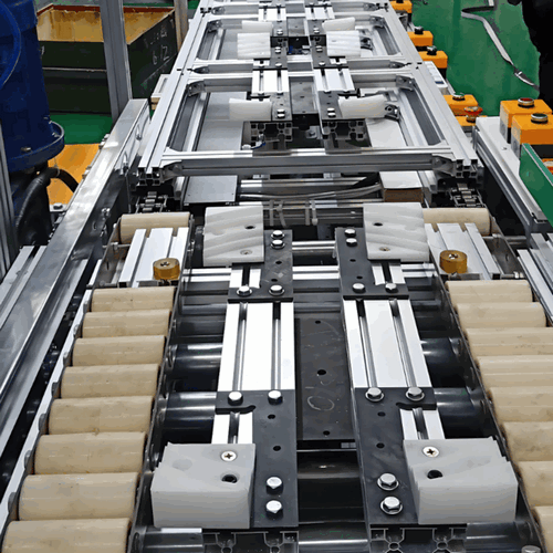 专利方案:逆向滚筒线+换线机构,适配动力电池包高效双向传输?。