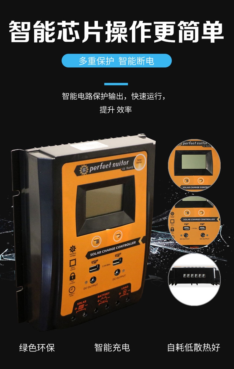 太阳能控制器全称为太阳能充放电控制器,是用于太阳能发电系统中,控制多路太阳能电池方阵对蓄电池充电以及蓄电池给太阳能逆变器负载供电的自动控制设备。它对蓄电池的充、放电条件加 以规定和控制,并按照负载的电源需求控制太阳电池组件和蓄电池对负载的电能输出,是整个光伏供电系统的核心控制部分。