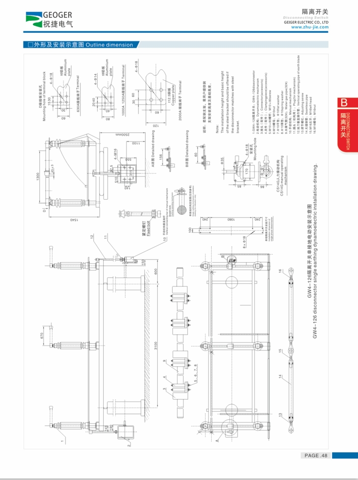户外35KV双柱水平式隔离开关GW4-40.5D/630-31.5祝捷电气